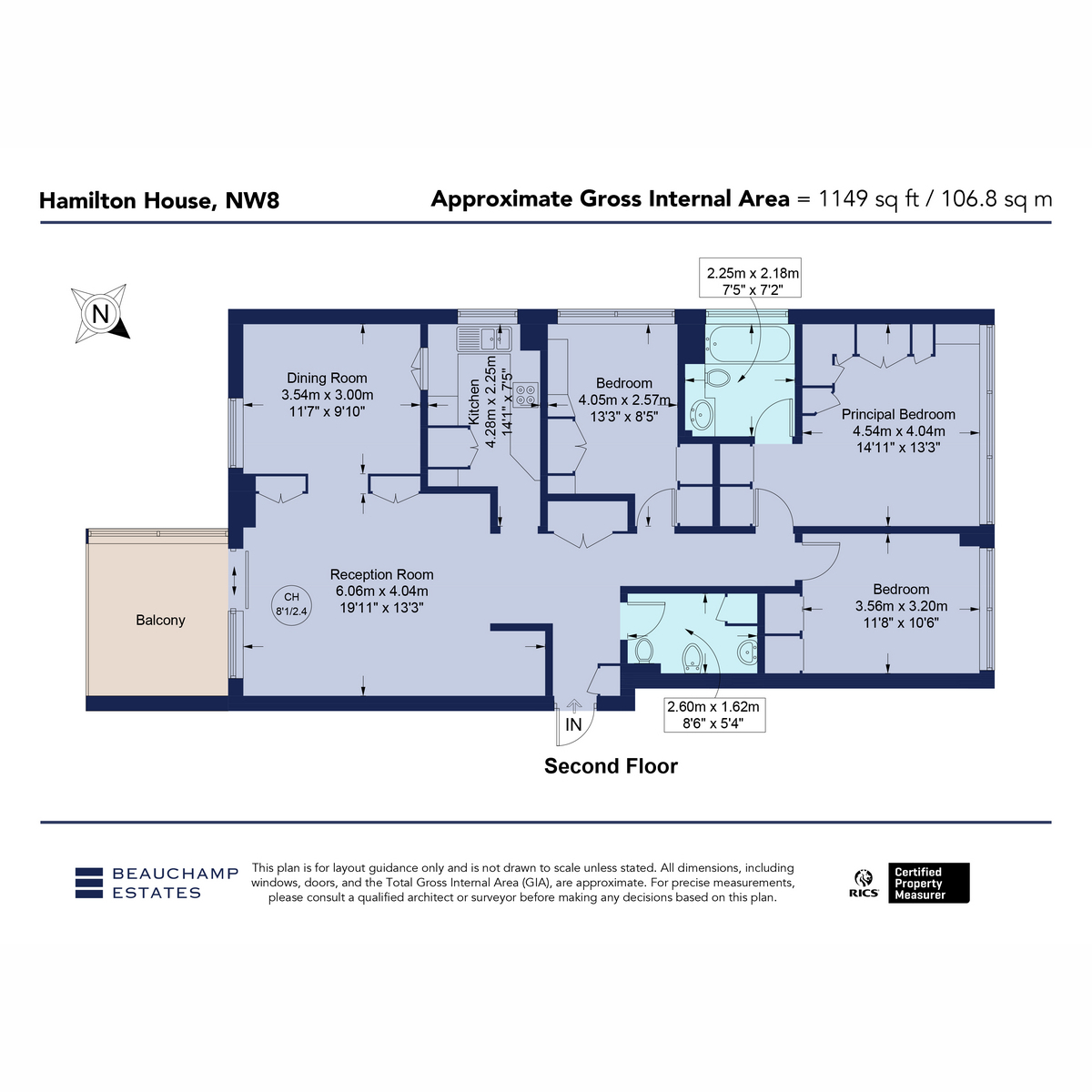 The property comprises of three bedrooms (one used as a study), bright reception room with direct access to a south facing balcony, separate kitchen, two bathrooms and separate WC The apartment further benefits from communal gardens, 24 hour porterage, passenger lifts and a designated underground car parking space.