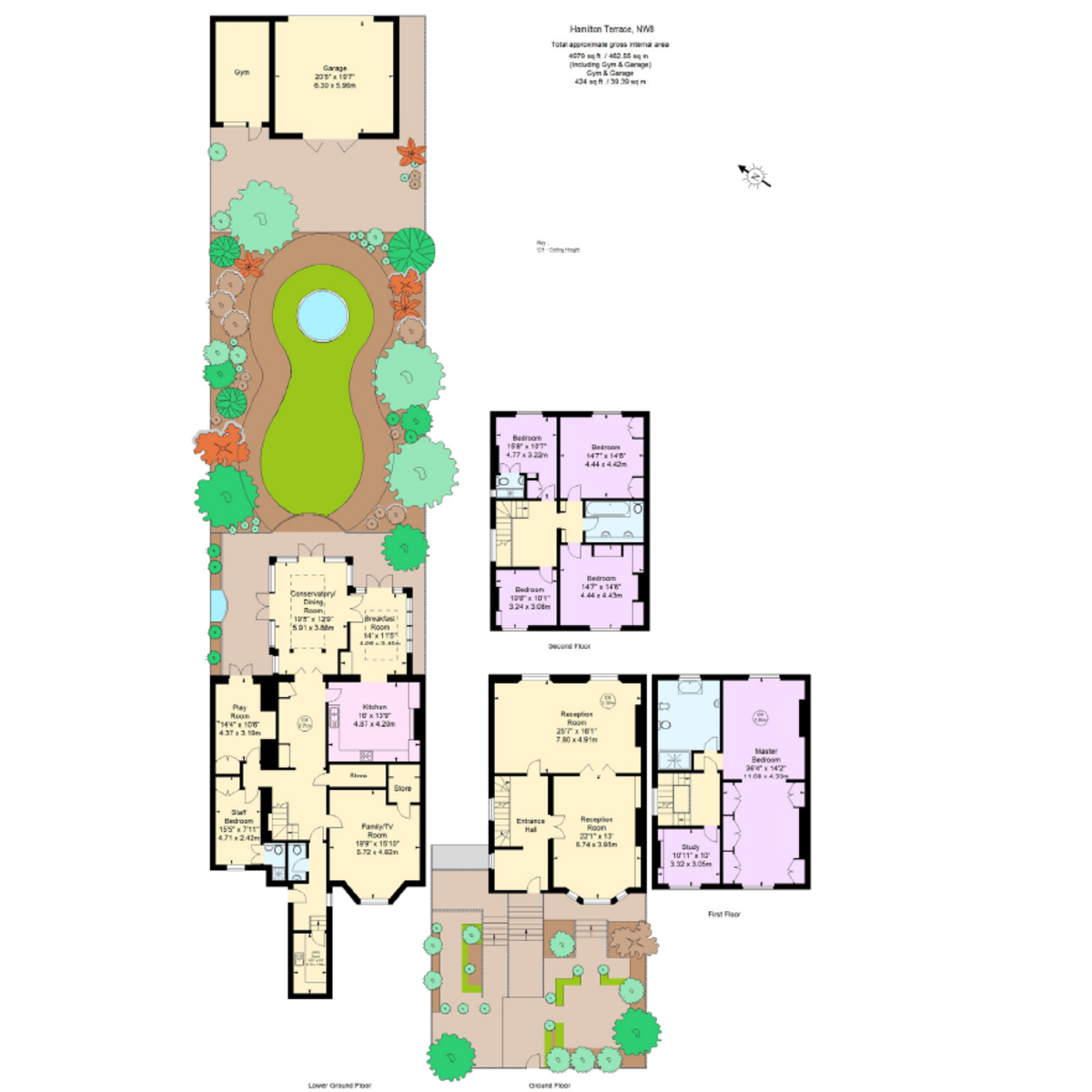 A well-proportioned six-bedroom Victorian house located on Hamilton Terrace, one of the most sought-after roads in St John's Wood. This residence spans over 5,100 sq ft and includes extensive family and entertaining spaces, a landscaped 92 ft garden, gated parking for two large cars and a garage that has been converted to a gym or flexible workspace.