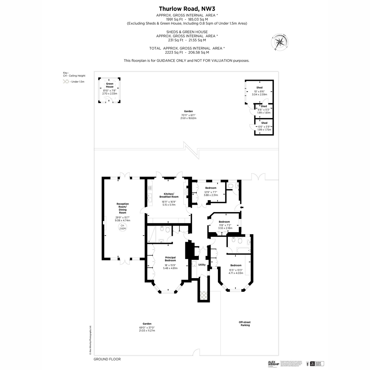 The property comprises a spacious principal bedroom with an ensuite bathroom and three further bedrooms, an outstanding large separate kitchen/breakfast room and a substantial reception room featuring its original Victorian ceiling with light pouring in from the front and back gardens. In addition, there is a separate utility room and guest cloakroom. The walled garden has been lovingly designed and is one of Hampstead's most beautiful. There is a superb greenhouse and also a versatile and excellent garden work shed. The property further benefits from off-street parking and its own private entrance.