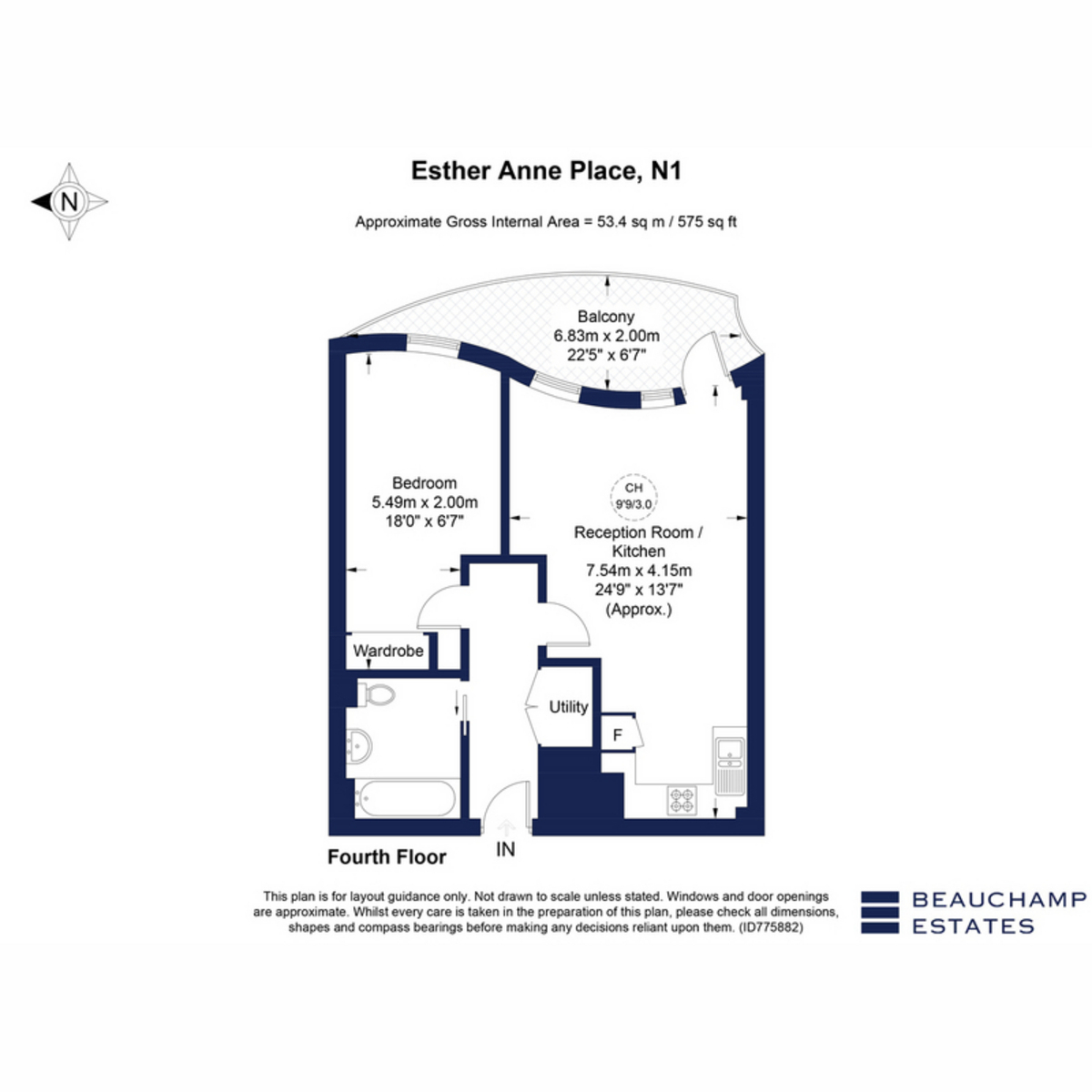 The entrance leads into a combined kitchen, dining and reception space with access to the private balcony. The principal bedroom is supported by a bathroom and a separate utility room. Residents also benefit from landscaped gardens and exclusive on-site facilities including a health club, swimming pool, cinema and children’s club, alongside the convenience of a 24-hour concierge.