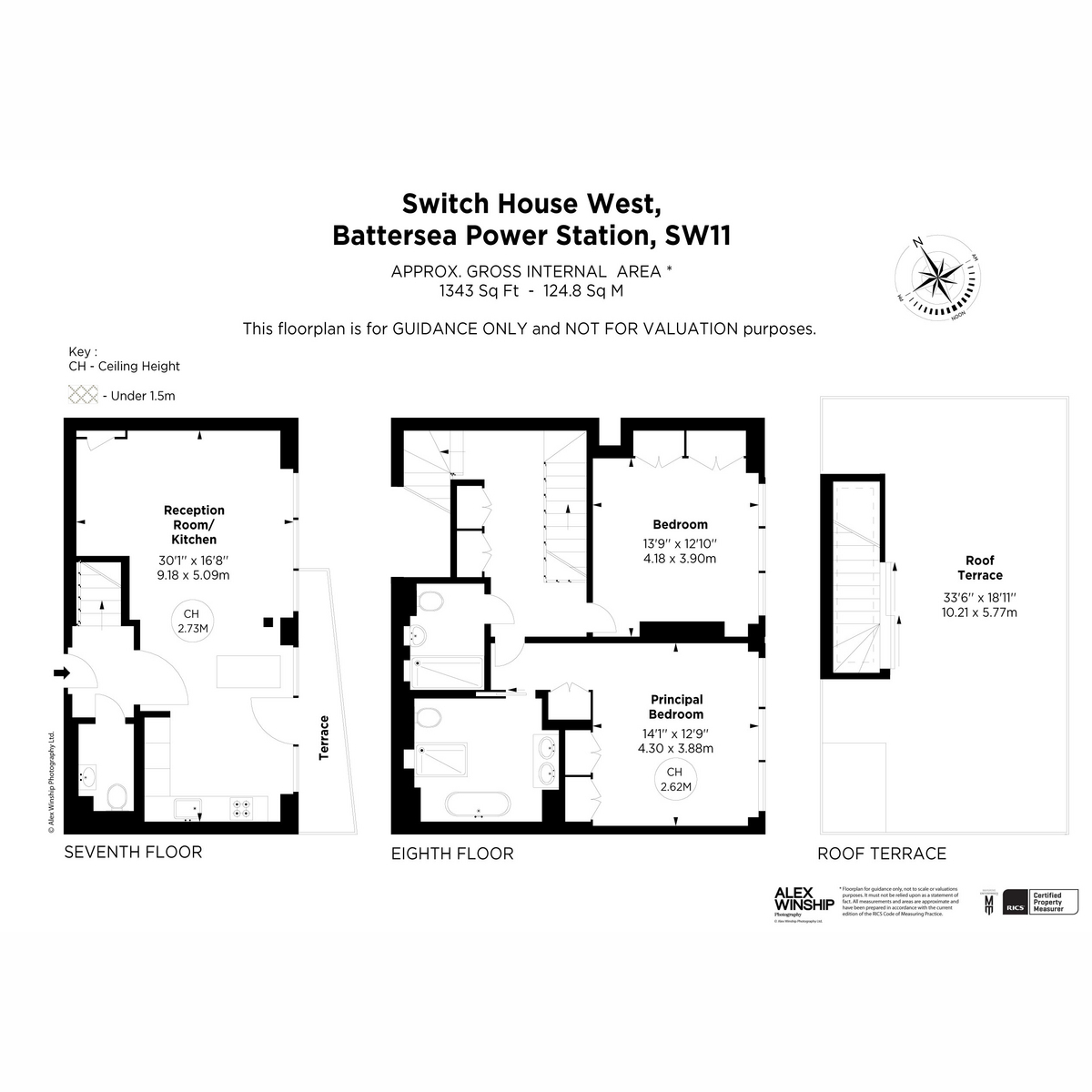 Set across three levels, the property features an open-plan reception and kitchen, two bedrooms including a principal suite, a separate bathroom and a large private roof terrace.